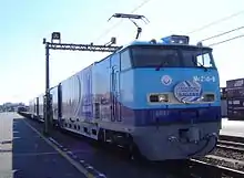 2005 Blue Ribbon Award winner, JR Freight M250 series Super Rail Cargo EMU carrying commemorative Blue Ribbon Award sticker, 2005