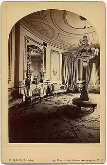 ![]() A stereograph view of the Blue Room, in 1870s, during the administration of President Ulysses S. Grant | |