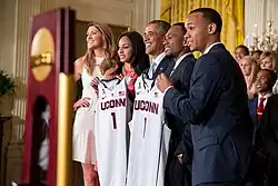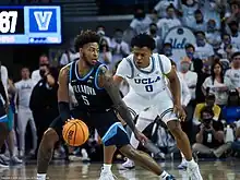 UConn has also earned some consideration as a blue blood, and their 2023 championship solidified such a status for many media writers.[7][8][9] O'Neil wrote that "Maybe UConn's delayed entry [into blue blood membership] is due to the fact that the Huskies don't quite fit the mold. The Huskies are more feisty than refined," adding that "they also read more blue-collar than blue-blooded."[4] Villanova's Final Four and championship game appearances in the 2010s and 2020s has also garnered them consideration for blue blood status.[3] When Duke, Kansas, UNC, and Villanova all made the Final Four in the 2022 NCAA tournament, numerous basketball media writers discussed the occasion as the first time all Final Four teams were blue bloods.[9][10][11]