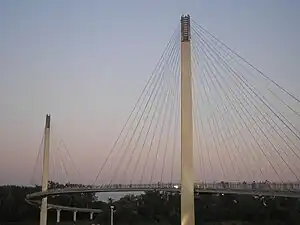 The Bob Kerrey Pedestrian Bridge[3] is a 3,000-foot (910 m) footbridge across the Missouri River between Council Bluffs, Iowa, and Omaha, Nebraska. It opened on September 28, 2008.[2]