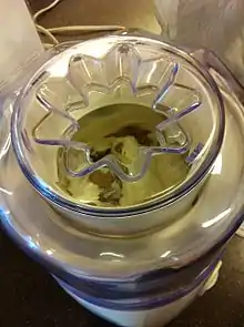 Boba ice cream bars consist of ice cream and boba. A mixture of whole milk, heavy whipping cream, sugar, vanilla, and any additional flavors are mixed in a bowl until the mixture is homogeneous. Once homogeneous, the mixture is poured into an ice cream maker. Boba typically consists of tapioca starch, sweet rice flour (mochiko), brown sugar, and water. The dough is rolled into tiny spheres. The spheres are cooked in boiling water. When done, it is cooled in an ice bath so that they don't stick together. The boba is then mixed in with the ice cream. The boba and ice cream mixture is then put into popsicle molds and put into the freezer until the popsicles are hardened.