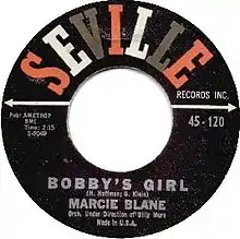 "Bobby's Girl" is a song and single written by Gary Klein and Henry Hoffman. The original was performed by American teenage singer Marcie Blane, and became a #3 hit on the US charts. A near-simultaneous cover by British singer Susan Maughan was the hit in the UK, coincidentally also reaching #3 on the UK charts.[2][3] Both Blane and Maughan are one-hit wonders; for both these artists, "Bobby's Girl" marked their only appearance on a national top 40 chart.