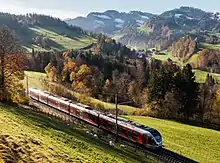 The Südostbahn wants to reduce journey times from Wattwil to Nesslau to under half an hour in order to be able to run half-hourly rather than hourly services. Therefore the line will be upgraded as far as possible for higher speeds in 2019. Between Wattwil and Ebnat-Kappel trains will be able to run at 140 km/h. The exit speed from Wattwil station will be increased around 2021.[6] The reversal of the service in Nesslau has been carried out automatically without intervention by a driver since 2017.[7]