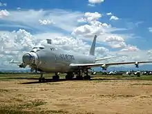 The YAL-1 with a low-power laser was test-fired in flight at an airborne target in 2007.[2] A high-energy laser was used to intercept a test target in January 2010,[3] and the following month, successfully destroyed two test missiles.[4] Funding for the program was cut in 2010 and the program was canceled in December 2011.[5] It made its final flight on February 14, 2012, to Davis–Monthan Air Force Base in Tucson, Arizona, to be kept in storage at the "Boneyard" by the 309th Aerospace Maintenance and Regeneration Group. It was ultimately scrapped in September 2014 after all usable parts were removed.
