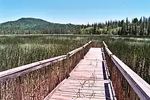 Boggs Lake is managed by the Nature Conservancy and the California Department of Fish and Game. It is 8 miles (13 km) south of Clear Lake and has a small parking area and hiking trail loop. The protective fence and interpretive display boards were installed by the Nature Conservancy.
