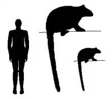 Size of B. paulae compared to 180 cm man and Dendrolagus goodfellowi