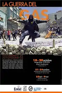 ![]() 2003 demonstrations against president Gonzalo Sánchez de Lozada. "The gas is ours by right, to recover it is our duty." | |||