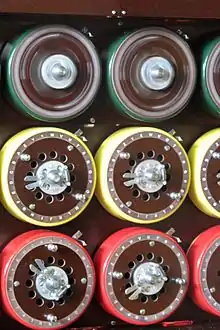 The drums were colour-coded according to which Enigma rotor they emulated: I red; II maroon; III green; IV yellow; V brown; VI cobalt (blue); VII jet (black); VIII silver.[27]