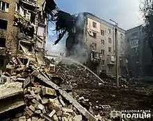 - ↑ "Внаслідок ворожого обстрілу згорів багатоквартирний будинок". t.me (in Ukrainian). Retrieved 2 November 2022.