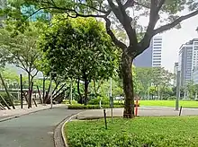Track 30th, an urban park, is located on one side of the High Street. Its amenities include a jogging path and several fitness oriented installations[22] that can be used for exercises such as pull ups.[23] The park can be accessed through a nearby bus stop.[24]