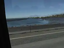 Borgarfjarðarbrú (Icelandic pronunciation: [ˈpɔrkarˌfjarðarˌpruː], "Borgarfjörður bridge") is the second longest bridge in Iceland, after Skeiðarárbrú. It crosses Borgarfjörður, linking Borgarnes to Route 1 (the Ring Road) and connecting the town with other parts of Iceland. It spans 520 m and was opened on 13 September 1981,[2] with repairs being done in 2012.[3] Before the bridge was opened, the Ring Road crossed the Hvítá river 4 kilometres (2.5 mi) upstream of its mouth into Borgarfjörður at the bridge at Ferjukot opened in 1928.