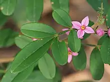Boronia umbellata, commonly known as the Orara boronia,[2] is a plant in the citrus family Rutaceae and is endemic to a small area on the north coast of New South Wales. It is an erect shrub with many branches, aromatic, pinnate leaves and clusters of up to ten dark pink flowers in the leaf axils.