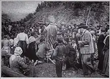 Residents mostly abandoned Boscotrecase.[7] Some residents formed a long procession and brought the statue of Sant'Anna, the patroness of Bosctrecase,[8]: 22 to avert the lava flow. While the Church of Sant'Anna was surrounded by lava, most of Boscotrecase was spared.[8] The flow that aimed at Casavitelli and Annunziatella was diverted by Vallone Izzo, a valley immediately below town. The flow that aimed at Oratorio stopped at a lava stone quarry.