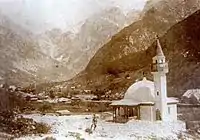 During the First World War, a Bosniak regiment made up primarily of Bosnian Muslims were sent to fight on the Italian front.[2] One of the soldiers who fought there was a boy called Elez Dervišević, the youngest soldier to fight in the Soca battle in World War I.[2] Elez was 11 years old when he served in the Austro-Hungarian Army. In Log pod Mangartom there is a statue of Elez's father dedicated to him.[2]