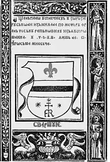 • srbskoga slovi ćirilskimi (Serbian Cyrillic letters) and bosansko-dalmatinska ćirilica (Bosnian-Dalmatian Cyrillic), by Croatian linguist Vatroslav Jagić (1838–1923)[25][26]