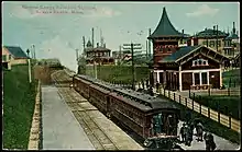 Between 1896 and 1900, the section from Revere Beach to Point of Pines, formerly running along the beach, was relocated inland to lie next to the Eastern Railroad's abandoned Chelsea Beach Branch.[2] The stations were moved and a new one (Bath House) was built. Revere Beach Boulevard was built later along the former route.