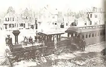 The BW&PS was organized on July 3, 1876 and opened a 3 ft (914 mm) narrow gauge line on June 7, 1877. This line split from the BRB&L at Winthrop Junction and headed east and south for 1.8 miles (2.9 km) to Winthrop Center and extended in stages during the following years. In 1881, the part heading south was closed and a new line was built east to Ocean Spray and south to Short Beach.[4]: 32–39