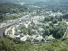 The town sits in a sharp bend of the river Semois (German: Sesbach, Walloon: Simwès, in France : Semoy) whose total length is 210 km. The surrounding area is largely forested.