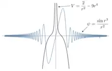 First of all, we take a function , then . These are divergent spherical waves, since the energy is greater than the potential , the classical kinetic energy remains positive. The wave function belongs to a continuous spectrum, the integral diverges. Let's try to change the wave function so that the quadratic integral converges and the potential varies near -1.