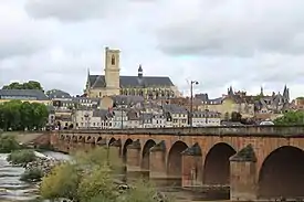 ![]() ![]() ![]() ![]() Clockwise from top: the Cathedral of Saint John in Besançon; the Théâtre de Lons-le-Saunier; the Loire Bridge and the Cathedral in Nevers; and view of Dijon | |