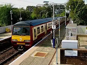 Bowling railway station serves the village of Bowling in the West Dunbartonshire region of Scotland. This station is on the North Clyde Line, 12¼ miles (20 km) west of Glasgow Queen Street.