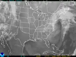 ![]() Visible satellite imagery of the nor'easter offshore Cape Cod at peak intensity, on the morning of December 27 | |