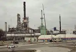 The largest of these industries is the Marathon Petroleum Company LP refinery located at 301 South Fort Street in Oakwood Heights. The facility was originally built in 1930 by the Aurora Gasoline Company. Today, the expanded facility is the only petroleum refinery in Michigan, and it has a capacity of 140,000 barrels per day and around 540 employees.[23] The refinery received the Energy Star Award in 2007 and 2008 from the Environmental Protection Agency for reducing energy usage and protecting the environment through energy efficiency.[24] The refinery has added green space around its facility, although it is still viewed negatively by the surrounding communities.[25]