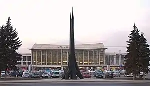 The Brașov railway station is the main station in Brașov, Romania. The building on the current location was opened to traffic in 1962. The station's bell chimes preceding the announcements represent a few notes from Ciprian Porumbescu's operetta Crai Nou.