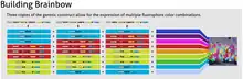 Brainbow is implemented in vivo by crossing two transgenic organism strains: one that expresses the Cre protein and another that has been transfected with several versions of a loxP/XFP construct. Using multiple copies of the transgene allows the XFPs to combine in a way that can give one of approximately 100 different colors.[4] Thus, each neuron is labeled with a different hue based on its given combinatorial and stochastic expression of fluorescent proteins.