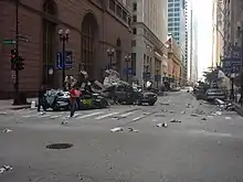 On October 1, 2009, Bay revealed that Transformers: Dark of the Moon had already gone into pre-production, and its planned release returned to its originally intended date of July 1, 2011, rather than 2012.[14] Due to the revived interest in 3-D filming technology brought on by the success of Avatar,[15] talks between Paramount, ILM, and Bay had considered the possibility of the next Transformers film being filmed in 3-D, and testing was performed to bring the technology into Bay's work.[16] Bay originally was not much interested in the format as he felt it did not fit his "aggressive style" of filmmaking, but he was convinced after talks with Avatar director James Cameron,[17] who even offered the technical crew from that film. Cameron reportedly told Bay about 3-D, "You gotta look at it as a toy, it's another fun tool to help get emotion and character and create an experience."[18] Bay was reluctant to film with 3-D cameras since in test he found them to be too cumbersome for his filming style, but he did not want to implement the technology in post-production either since he was not pleased with the results.[19] In addition to using the 3-D Fusion camera rigs developed by Cameron's team,[18] Bay and the team spent nine months developing a more portable 3-D camera that could be brought into location.[17]