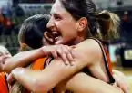 Brashear Lady Tigers players celebrate their first Missouri Class 1A basketball championship, March 2003. The team would repeat as state champs in 2004.