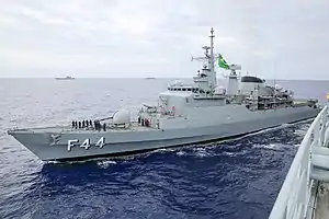 F Independência (F-44) is a Niterói-class frigate of the Brazilian Navy. The Independência was the fifth ship of her class ordered by the Brazilian Navy, on 20 September 1970. The Independência was launched on 2 September 1974, and was commissioned on 3 September 1979.[2][3]