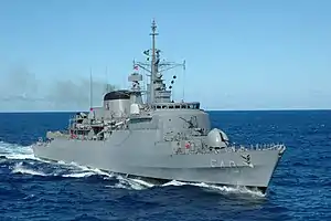 F Niterói (F-40) is a Niterói-class frigate of the Brazilian Navy. The Niterói was the lead ship of her class ordered by the Brazilian Navy, on 20 September 1970. The Niterói was launched on 8 February 1974, and was commissioned on 20 November 1976.