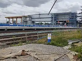 ![]() Brent Cross West station under construction in June 2022, showing the cycle/pedestrian bridge | |