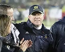 - ↑ Grathoff, Pete (October 8, 2016). "Notre Dame coach catches heat for blaming center for snap woes during hurricane". KansasCity.com. Archived from the original on February 2, 2019. Retrieved April 2, 2023.