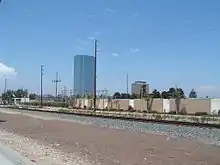 Bridesmaids was budgeted at $32.5 million.[31] Though primarily set in Milwaukee and Chicago, principal photography actually took place in Los Angeles, California.[32] Production designer Jefferson Sage, who has worked with Apatow and Paul Feig since their Freaks and Geeks days, noted that the first fact that appealed to him about the project "was that you had these two disparate worlds: There was Annie's world in Milwaukee, and then there was Helen's world in Chicago. It immediately drew this dichotomy between the rivalry that developed between them."[32] However, Sage acknowledged that it was a challenge to find "architecture that would give us those Midwestern worlds. Chicago is a beautiful, distinctive city architecturally, and restricted views of downtown L.A. feel like Chicago."[32] The production decided to use the Los Angeles County Arboretum and Botanic Garden as the location for Lillian and Dougie's wedding.[32] Additional scenes where Annie meets Officer Rhodes on the highways between Milwaukee and Chicago were filmed in Oxnard, California, which Sage described as a "broad, flat, green area away from mountains."[32]