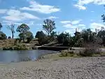 When Lake Wivenhoe is full the waters extend many kilometres up the river.[21] The first crossing upstream from the lake is a high level bridge built in conjunction with the dam to raise the Esk Kilcoy Road well above the maximum level of the lake. Several minor crossings of this section of the river shown on maps are omitted from the list below. The omitted crossings belong to one of the following groups: