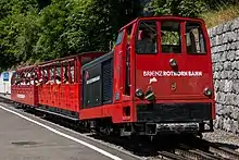 The Brienz Rothorn Railway (German: Brienz Rothorn Bahn, BRB) is a tourist rack railway in Switzerland, which climbs from Brienz, at the eastern end of Lake Brienz, to the summit of the Brienzer Rothorn. The railway is 7.6 kilometres (4.7 mi) long, is built to 800 mm gauge (2 ft 7+1⁄2 in gauge), and uses the Abt double lamella rack system. Unusually for Switzerland, the line is not electrified, and most trains are operated by steam locomotives.[1][2][3][4]