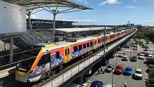 The airport has two railway stations as part of a privately owned airport rail line. The international terminal railway station is elevated and located next to the international terminal, as is the domestic railway station. Both stations are privately owned and operated by the Airtrain Citylink consortium. As a result, fares are more expensive than a regular suburban ticket however less than half the taxi fare. The Airtrain Citylink travels via the Queensland Rail Citytrain network to Fortitude Valley and the Brisbane CBD, with most trains continuing to the Gold Coast via South Bank.