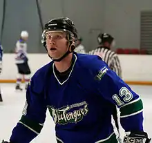 The following two years in Brisbane saw the Blue Tongues improve each season, finishing sixth and fifth in the standings, failing to qualify for the AIHL finals weekend on both occasions.[8] The team was very close to qualifying in 2007 but fell three points short of finishing fourth after the team, along with two others, was handed a three-point penalty by the league for icing an illegible player.[9] The Blue Tongues did sign two ex-NHL players during this time. First, in 2006, on 6 June, the team announced the signing of Rob Zamuner. Zamnuner had spent thirteen seasons playing in the NHL with teams such as Boston Bruins and Tampa Bay Lightning.[10] Second, in 2007, the Blue Tongues secured the services of goaltender Tyrone Garner. Garner was a New York Islanders draft pick from 1998 and later played three games in the NHL for the Calgary Flames before a hockey career that took him around the globe.[11]