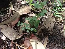 A number of areas in Brisbane Water National Park contain rare and endangered plants. It is likely that these remnant populations demonstrate the ways that environmental conditions have changed in the past few thousand years. In some cases these rare species are remnants of populations that would have been extensive before widespread clearing took place for urban and agricultural use.[6] The park encompasses a wide variety of flora with 814 species recorded.[8] The diversity of plant species and plant communities is reflective of variations in geology, soils, hydrology, aspect, and fire history.[6] Ten of the recorded plant species are considered to be rare and several others are uncommon or restricted in their distribution.[6] The park hosts a number of vulnerable and threatened species as listed under the EPBC act. Vulnerable species include: thick-leaf star-hair (Astrotricha crassifolia), Camfield's stringybark (Eucalyptus camfieldii), Deane's paperbark (Melaleuca deanei), and Grevillea shiressii. The endangered Somersby mintbush (Prostanthera junonis) is also present in the park.[8]