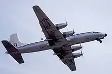 UK Ministry of Defence Bristol Britannia makes a visit to the maker's factory at Filton in 1983. As a civil airliner it had flown for BOAC, British Eagle, and Air Spain.