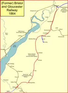The development of railways in Great Britain was gaining momentum, and it soon appeared obvious that a line between Bristol and Gloucester was appropriate. An attempt to get authorisation in the 1838 session of Parliament was unsuccessful, but on 1 July 1839 the Bristol and Gloucester Railway was authorised, to take over and extend the old Bristol and Gloucestershire coal line from Westerleigh to a junction with the Cheltenham and Great Western Union Railway at Standish. The length of new line was to be about 22 mi (35 km). Because continuity with the Birmingham and Gloucester Railway was foreseen, the track was to be standard gauge.[8][4] Authorised capital was £400,000.[2]