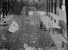 On 6 January 1909 this work was complete and testing continued,[6] on this occasion with a number of streamers attached so that the airflow might be observed. More ground trials were made, the ailerons moved to a position in the middle of the aft interplane struts, and the radiators moved forward slightly to adjust the aircraft's trim. In this form Cody made another flight on 20 January covering about 1,200 ft (370 m) and reaching a height of 25 ft (7.6 m) but crashed after a turn, Cody being unhurt.[7] The aircraft was again taken back to the factory for alterations and repairs. The ailerons were discarded and a pair of horizontal stabilisers were fitted in front of the rudder.[8] Cody flew the aircraft again on 18 February, this time landing with no more damage than a burst tyre and a broken rigging wire. Further successful flights were made on 22 February, after which the rear stabilisers were removed and the ailerons repositioned, now being placed on short outriggers trailing from the forward interplane struts, and the front rudder was moved to a position above the elevator.