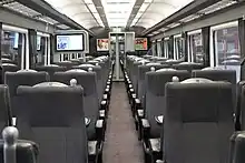 ![]() The interior of Standard Class aboard an LNER refurbished Mark 3 TS vehicle | |