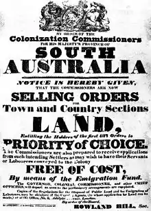 - ↑ "South Australian Commission Land Sale Regulations 1835 (issued by the Commissioners in the UK)". Museum of Australian Democracy. Documenting a democracy. Retrieved 16 November 2019.