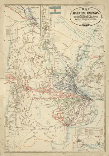 {{cite book}}: CS1 maint: location missing publisher (link) - 1 2 3 "Map of the Argentine Railways". 1911. Retrieved 2017-10-26.