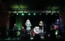 ![]() Hölljes (left) performing with Delta Rae in 2012 | |