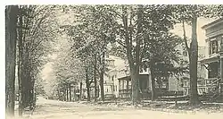 Middletown developed in the 18th century as a major port on the Connecticut River, but was in decline by the 1830s. Community leaders revitalized the local economy by founding Wesleyan University in 1831, and investing in textile and machine industries. The Wesleyan campus was laid out west of High Street, and the area between it and Main Street, originally open land used mainly for gardening, was developed residentially. Although there had been some houses built during the Federal period, the amount of housing stock in this area tripled between 1830 and 1850. The area was substantially built out by 1900, with only relatively minor additions and alterations since then.[2]