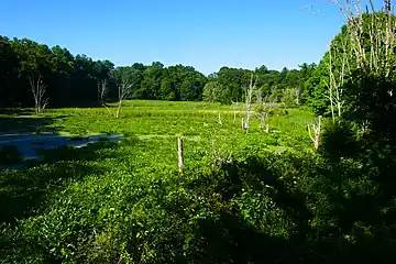 Broadmoor's 9 miles of trail pass through woodlands, marshland, ponds, and a glacial drumlin, and along the banks of the Charles River.[1] The sanctuary's wetlands feature wood ducks, painted turtles, great blue herons, and river otters.[8]